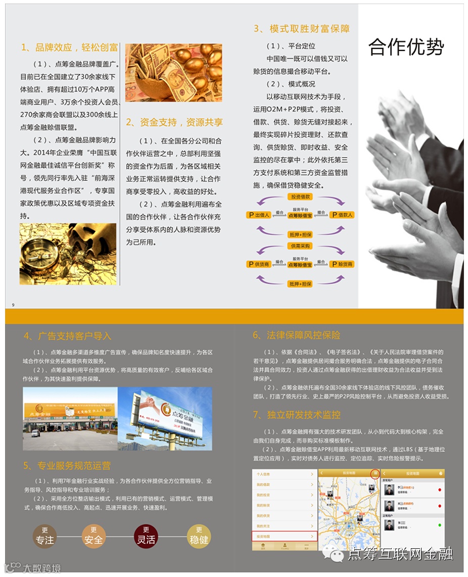 (1)、点筹金融多渠道多维度广告宣传,确保品牌知名度快速提升,为各区域合作伙伴业务拓展提供有效服务。