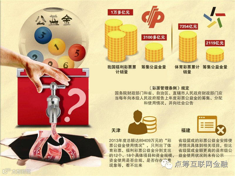 “彩票的本质是通过政府特殊事业向社会募集公益基金,最终目的不是经营牟利,更不是赌博娱乐,而是通过人们买彩票补充公益开支的不足。”中国政法大学财税法研究中心主任施正文说。福彩、体彩两大类彩票成立20多年来,我国已筹集公益金3100多亿元和2000多亿元。这些应“取之于民、用之于民”的公益金去哪儿了?