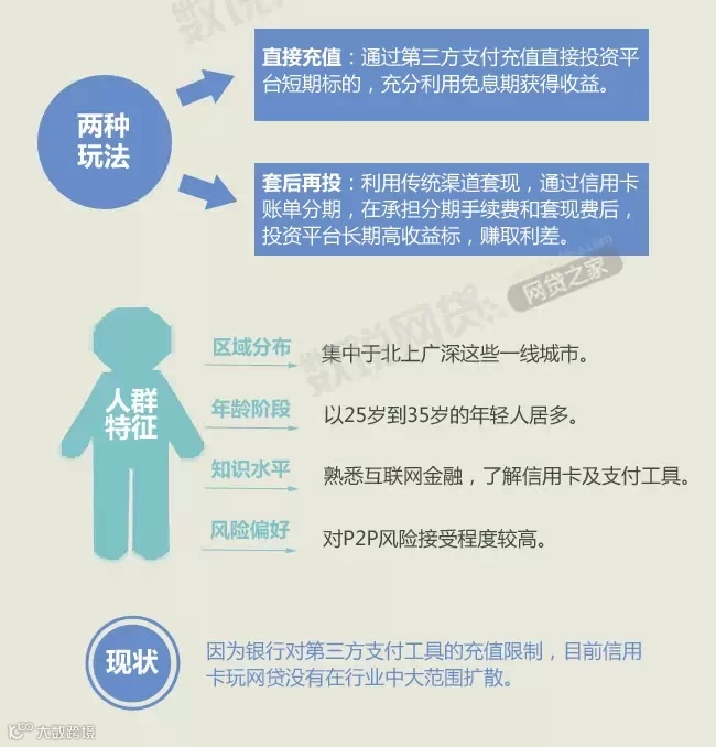 【导语】长期以来,主流舆论对信用卡投资P2P网贷一直不看好,监管层面也是明令禁止。然而不管你怎么看待,它都在那里。赞同者称其为"借鸡生蛋",反对者则认为是"火中取栗"。本期数说网贷就聊一聊信用卡玩网贷的得与失。