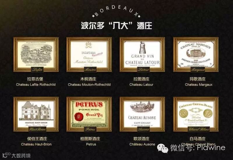 传说中的“波尔多八大”是指法国波尔多(Bordeaux)产区最负盛名的8座酒庄,分别是拉菲(ChateauLafite Rothschild)、拉图(ChateauLatour)、木桐(ChateauMouton-Rothschild)、玛歌(ChateauMargaux)、侯伯王(ChateauHaut-Brion)、柏图斯(Petrus)、欧颂(Chateau Ausone)和白马(Chateau Cheval Blanc)。