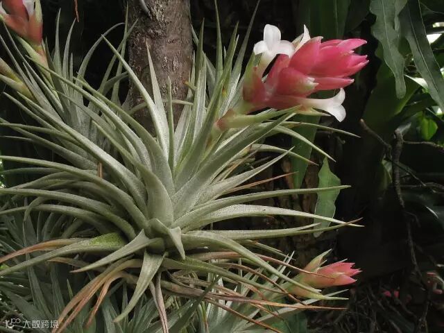 凤梨科的附生植物主要集中在“铁兰属(空气凤梨属)”,比如常见的空气草和老人须等。