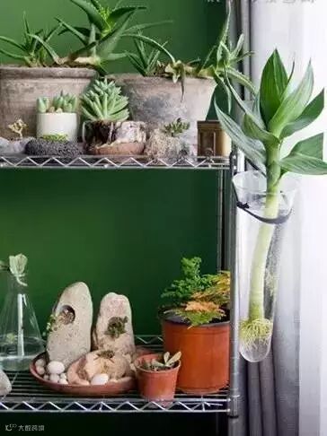 ➤搭配TIPS:各式绿植,加上一盆郁郁葱葱的小葱,地板上铺上一路鹅卵石,看起来温馨极了。