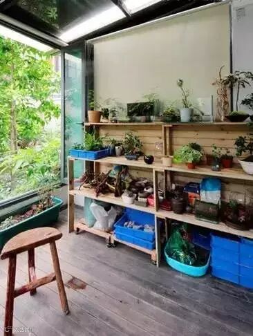 ➤搭配TIPS:封闭式阳台可以根据自己的喜好,打造成小花房,熙熙攘攘的植物和各式的工具摆在一起,随便搬个小凳子,一呆就是一下午。