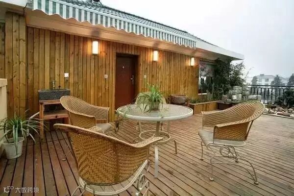 ➤搭配TIPS:如果露台够大,不妨分个区,边缘放些植物,遮雨棚下面摆上餐桌,还能享受露天晚餐呢。