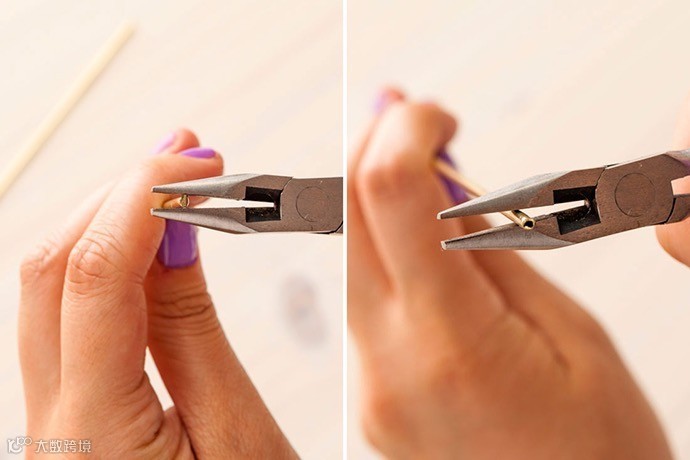 ②用钳子剪断铜管时,铜管会被挤压变形,需要用钳子将断面尽量恢复原状,后面的步骤会需要将铜丝穿过铜管。