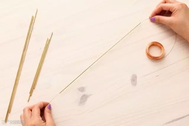 这些材料中,金属铜管和细铜丝可以在五金店里购买,选择自己需要的型号。花朵的颜色也可以进行调整,如果不希望花朵凋谢,可以选择人造仿真花。