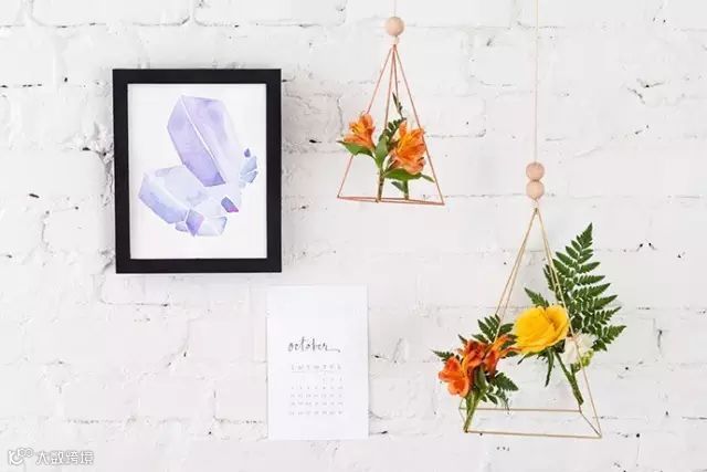 今天分享一个国外的DIY教程,教你用最简单的材料,制作出立体几何风格的墙面花艺装饰,让花朵在墙面上绽放。