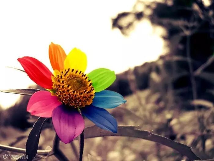 虽然一朵花上有数种颜色的花瓣有些天方夜谭,传说中的七色花更是难以弥得,但是我们可以养更多种植物,来构造一个自己的花园,或者利用插花来营造一个自己“七彩世界”。