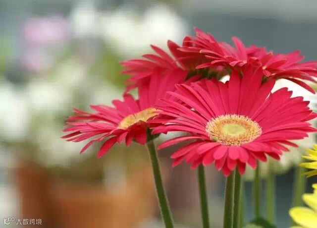 菊科宿根草本,花径较大,花色丰富,四季常开。喜温暖、阳光充足和空气流通的环境,属半耐寒性花卉,喜肥沃疏松。非洲菊是很好的切花品种,水养时间长,观赏性高,而且还是吸收甲醛的好手。