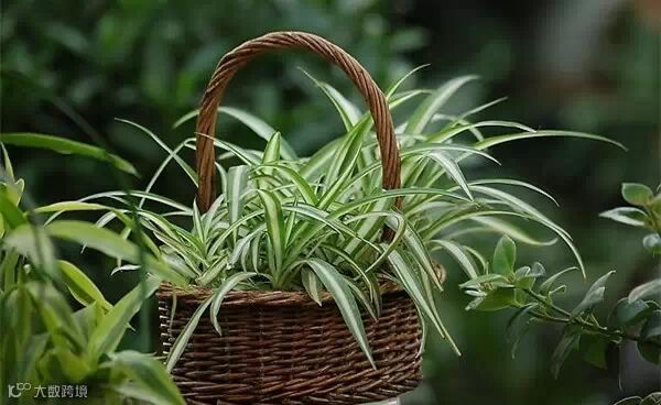 百合科多年生常绿宿根草本花卉,叶丛生,线形,边缘或中间有纵的黄白色条纹。夏秋之际,从叶间抽出细长柔韧下垂的匍匐枝,顶端或节上萌发嫩叶和气生根,开白花。吊兰可在室内水养,不仅可以净化空气,而且外形美观、管理简便。将盆栽吊兰挖出,去根部泥土,剪去老根、烂根,留下须根,放入容器瓶内,瓶里装入清水和花卉营养液,让吊兰根部浸于水中生长即可。