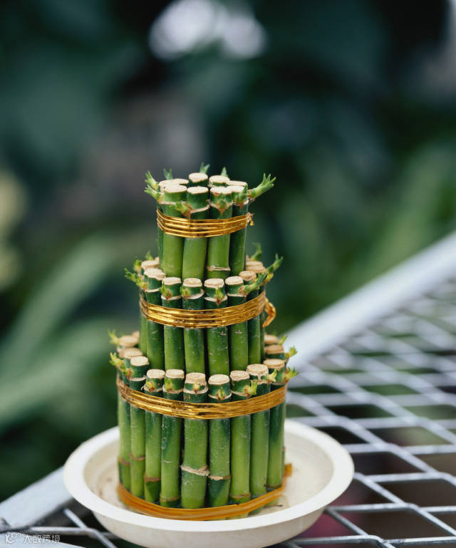 百合科龙血树属常绿直立灌木,很适用于室内水养花卉。富贵竹的叶片翠绿,茎秆笔直,圆形似竹。叶卵形先端尖,叶柄基部抱茎。它是极耐阴植物,在弱光照的条件下,仍然生长良好,挺拔强壮。可以长期摆放在室内观叶,不需要特别养护,只要有足够的水分,就能旺盛生长。水培时,将富贵竹茎秆切成20厘米以上的小段作为插穗插在水中,只要插穗的1/3能浸在水中就可生根成活。