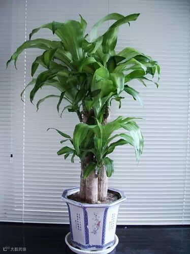 学名香龙血树,别名巴西铁树,为百合科龙血树属植物。常绿乔木,株形整齐,茎干挺拔。叶簇生于茎顶,长40~90厘米,宽6~10厘米,尖稍钝,弯曲成弓形,有亮黄色或乳白色的条纹;叶缘鲜绿色,且具波浪状起伏,有光泽。花小。黄绿色,芳香。性喜光照充足、高温、高湿的环境,亦耐阴、耐干燥,在明亮的散射光和北方居室较干燥的环境中,也生长良好。巴西木多采用扦插法繁殖。只要温度等条件适合,巴西木一年四季都可生长,是一种株形优美、规整、世界著名的新一代室内观叶植物。近年来,其水培品种发展迅速,只要配以足够的缓释肥料即可正常生长,旋转在客厅、书房、起居室内摆放,格调高雅、质朴,观赏性很强。