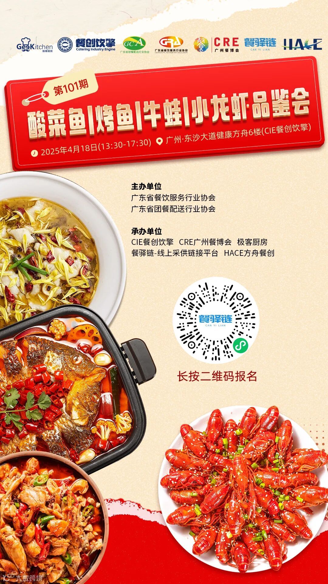 特邀广东省内连锁酸菜鱼、烤鱼、牛蛙、小龙虾、川湘菜、烧烤等等餐企老板、出品研发总监、总厨、采购、供应链、投资人等专业人士参加品鉴、对接交流。人数限制60位以内,实际参会以工作人员短信或电话确认为准,谢绝空降!