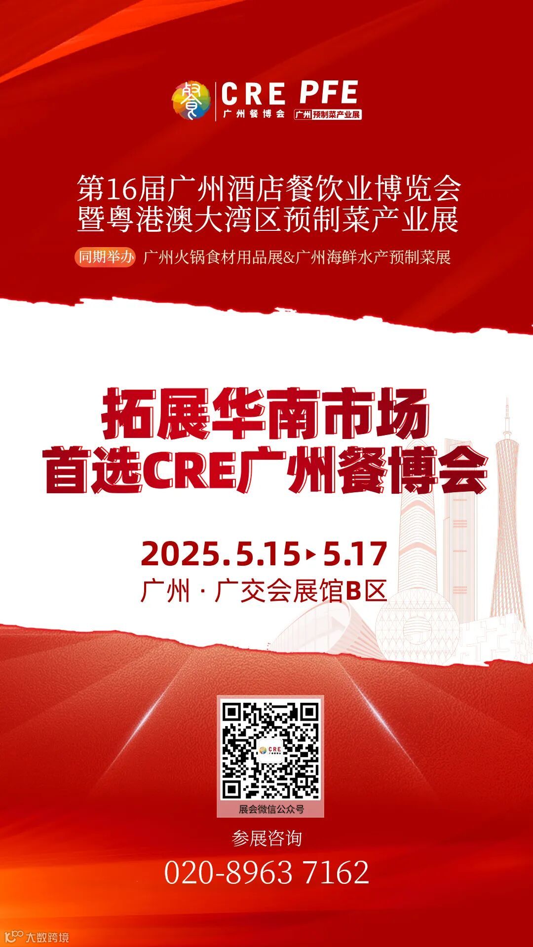 领取CRE·2025第16届广州酒店餐饮业博览会暨粤港澳大湾区预制菜产业展览会免费参观入场门票