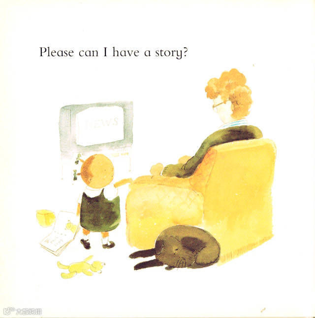 (小豆子跟正在看新闻的爸爸说):“爸爸,爸爸,能给我读一个故事吗?”