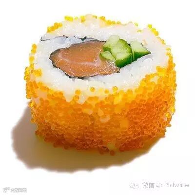 粉红色的桃红葡萄酒搭配橙红色的三文鱼寿司,首先在颜色上就有浑然天成的感觉,而且三文鱼可以让桃红葡萄酒的樱桃和柑橘风味得到彰显,让它的矿物质风味变得甘甜可口。