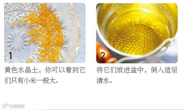 水晶土是一种含有丰富水分和营养的新型土壤。它在干燥状态下只有小米一般大,经过浸泡后却会变大好多倍。市面上卖的“水晶泥”、“彩色土”都属于水晶土。这种土用起来和清水差不多,平时无须浇水,只要在栽种之前将植物根部的土壤清洗干净、每天记得用喷雾器喷一些水保持土表湿润即可。不过,有一点需要格外注意,那就是不要让底部长期积水。