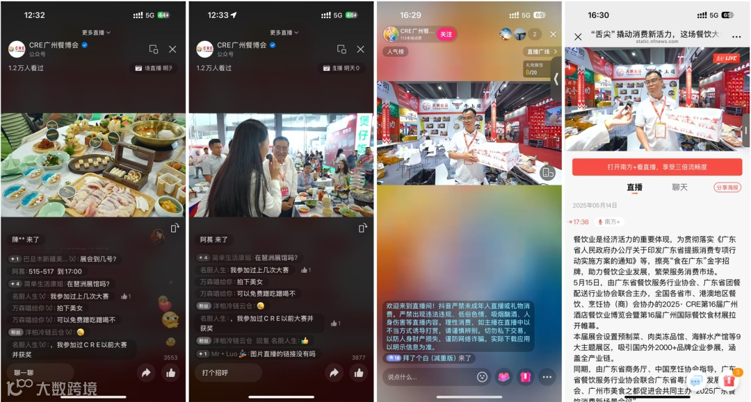 展前,百万级买家数据库联动 1000 + 行业社群启动预热,通过专业市场广告投放、精准邀约话术植入展商亮点,提前锁定目标受众注意力;展期现场,200 + 媒体报道 —— 既有人民日报、南方 + 等大众平台扩大社会影响力,也有红餐网、餐饮界等垂直媒体深挖企业价值,更有抖音、快手直播团队直击展位、访谈企业家。