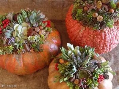 南瓜当花盆很有情调,不过南瓜容易腐烂。