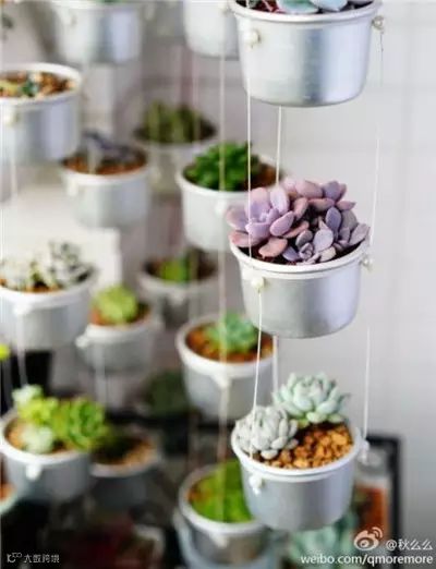 这种一串串挂起来的小盆栽,就像小时候的千纸鹤,美了,美了。