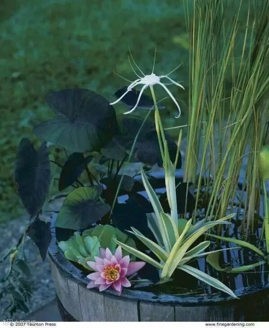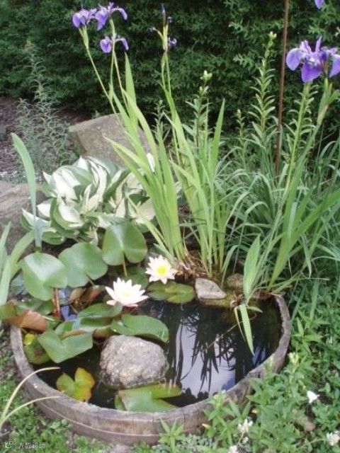 最简单的方法就是使用容器作为池塘的基础,然后可以把各种你喜欢的:比如水生植物,花卉,甚至是鱼或蟾蜍养在里面。