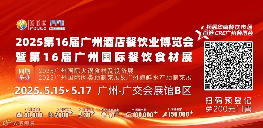 领取CRE·2025第16届广州酒店餐饮业博览会暨第16届广州国际餐饮食材展免费参观入场门票