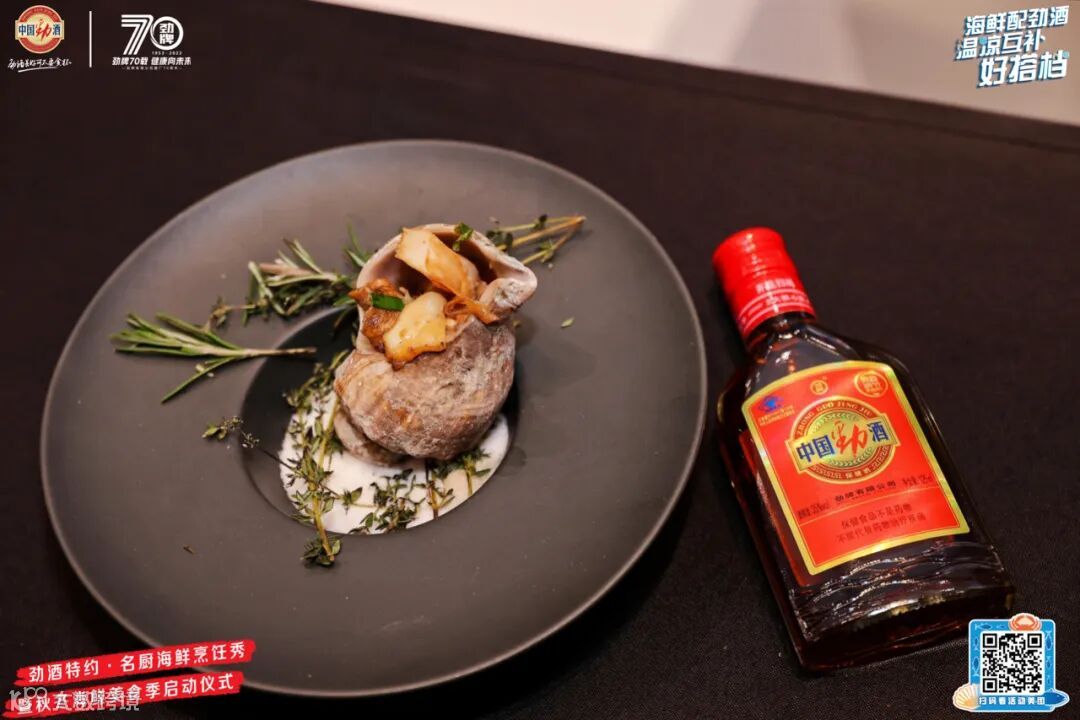 随着时间推转,《劲酒鲍鱼煎焗鸡》、《劲酒香草烧海螺》,两道精心烹饪的菜品依次完成。