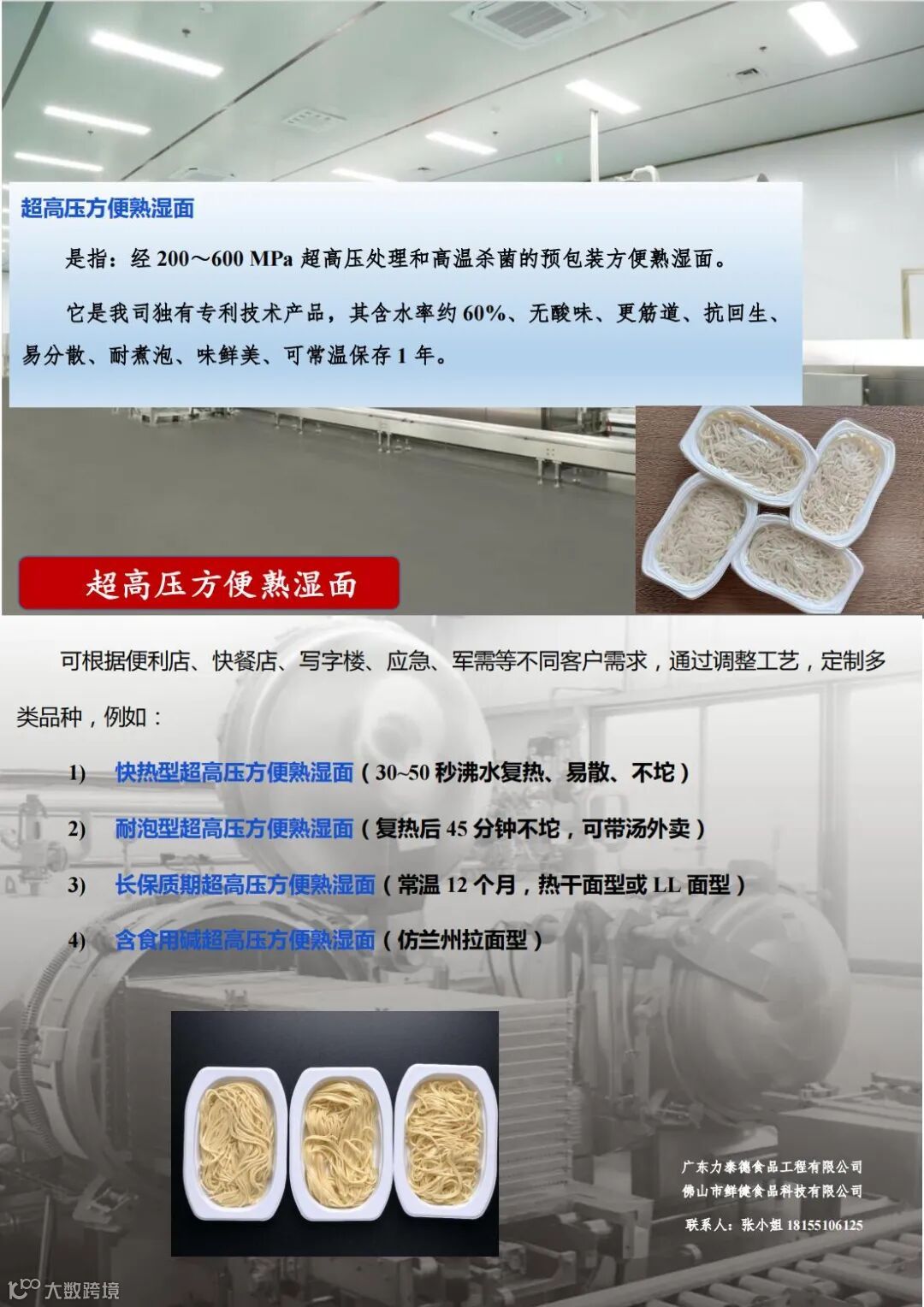 力泰德公司创制的超高压方便米饭生产线,工艺简捷独特、技术国际先进;已建有1800盒/时超高压方便米饭示范工厂。