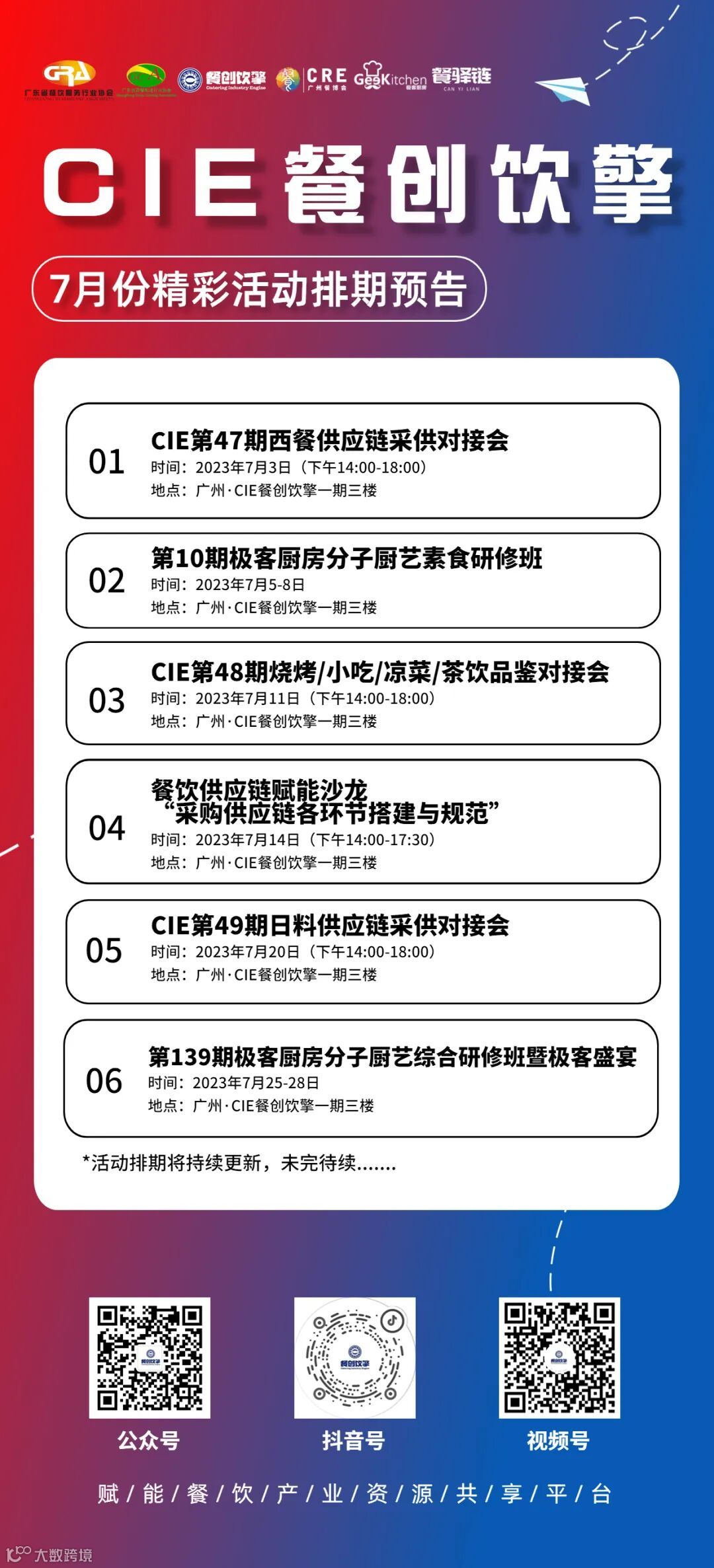 CIE餐创饮擎占地面积约5000平方米,配套共享烹饪厨房、美食品鉴区、优质产品展示区、共享茶咖室、共享会议室、共享办公室等。由广东省餐饮服务行业协会、广东省团餐配送行业协会、极客厨房、CRE中国餐博会、餐驿链联合发起,共同打造餐饮产业生态链的第三方赋能服务平台,致力为餐饮上下游产业链提供线上+线下一体化综合服务,包括:智慧餐饮、数字化管理、供应链协同、食安营养、教育培训、品牌孵化、展览发布、线上商城、研发定制、美食体验、项目孵化、集采共配、餐饮投融资等综合服务,助力企业创造价值,实现开源、节流、增效、控风险。