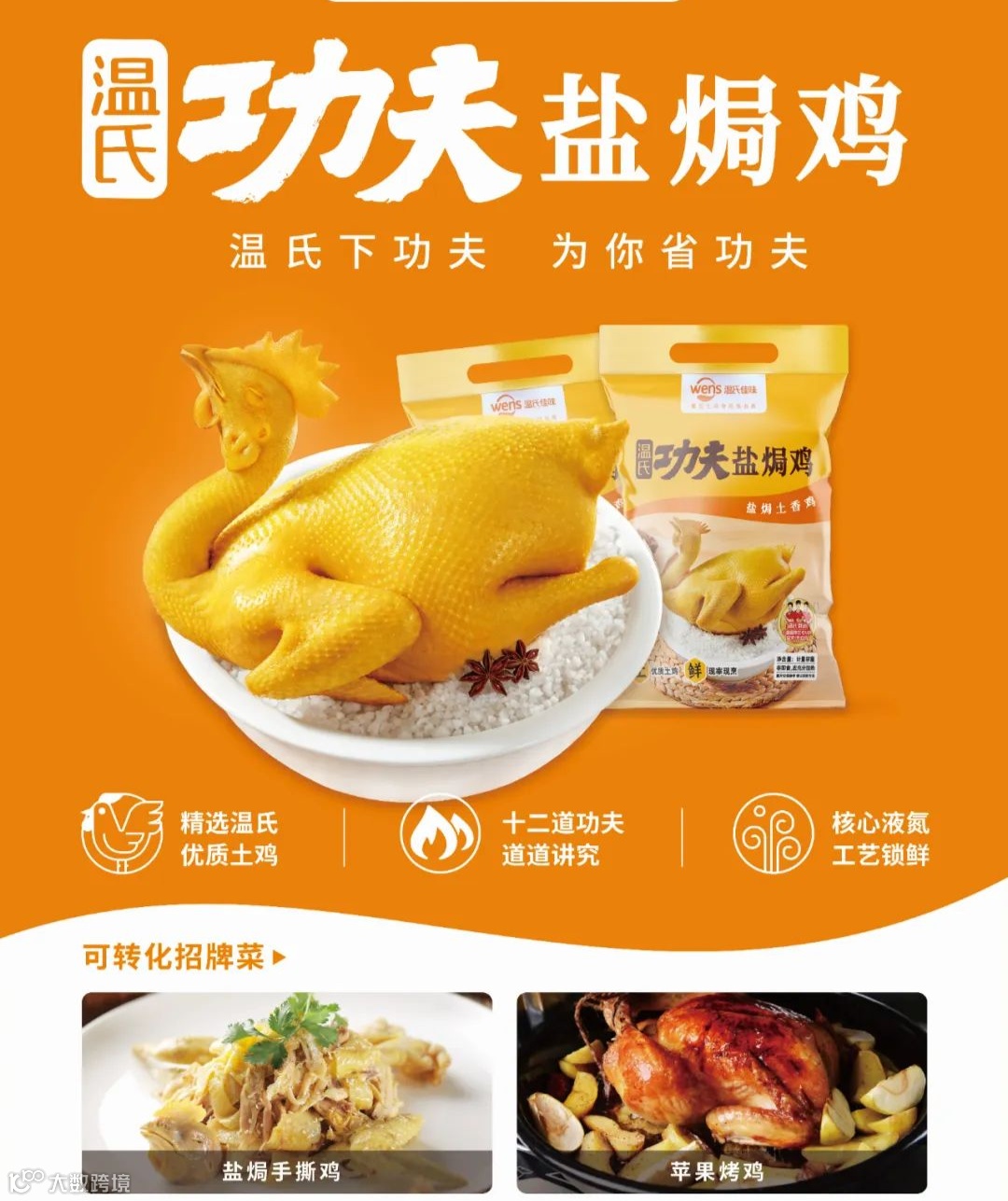 温氏佳味企业定位为“餐饮土鸡食材服务商”,以鲜活黄鸡为原料,采取即宰即烹、低温慢煮、速冻或冷链锁鲜等措施,开创鲜熟鸡新品类,引领中国中式食品发展潮流,打造安全、标准、高效的供应链,为消费者和机构客户提供多样化选择的食品(食材)。