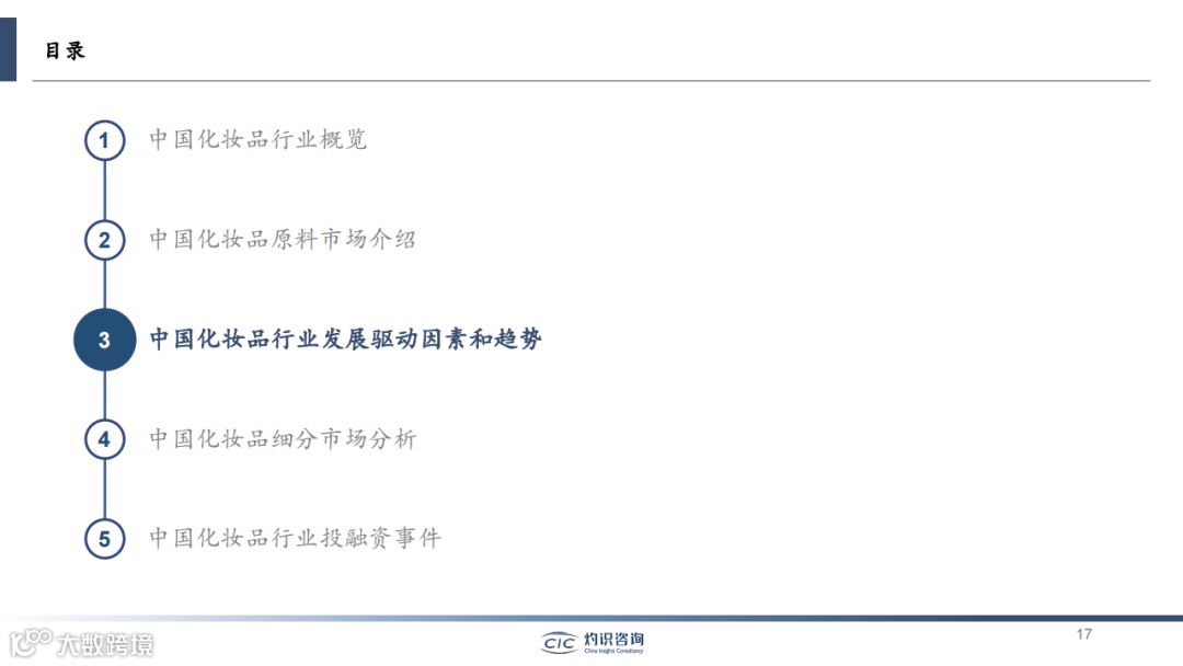 《中国化妆品行业白皮书》由CIC灼识咨询主笔撰写。《中国化妆品行业白皮书》从原料市场、发展驱动因素、