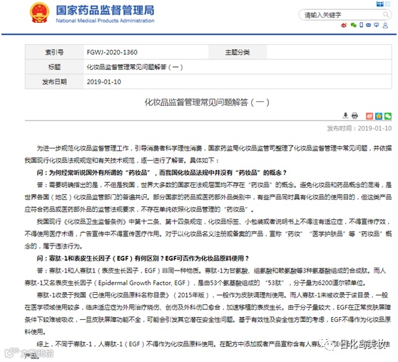 综上,在国内,EGF化妆品中目前不允许使用,含有EGF成分产品均纳入药品管理。但国外许多国家,如日本和欧洲等化妆品还是允许使用EGF的。那么对于像寡肽-1,寡肽-X等这些成分,在我国是否允许使用呢,我们下期再讨论。