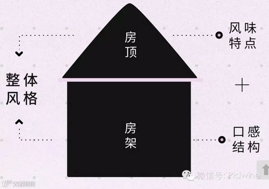 喝葡萄酒的体验是由口感结构和具体风味所一起决定的。如果把葡萄酒的风格比喻成一个房子的话,房屋架构相当于葡萄酒的口感结构,而房顶相当于葡萄酒的具体风味特点。房架是支撑房顶的部分;如果房架不稳固不平衡,房顶的美观无从谈起。同理,葡萄酒的口感架构支撑了风味特点,如果口感架构不平衡不协调,风味的复杂和层次无从谈起。