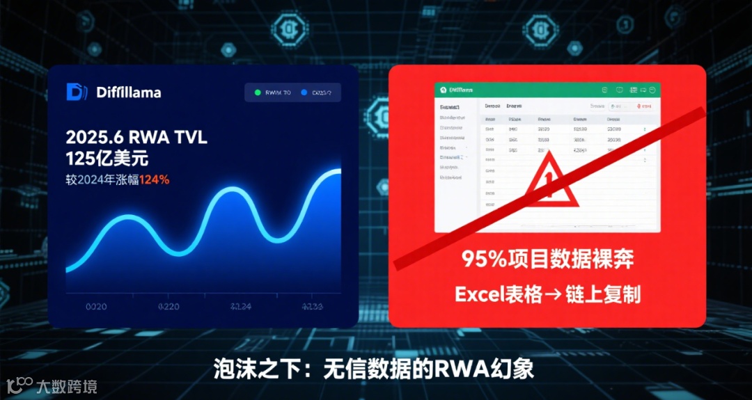 Defillama 的仪表盘上,RWA(现实资产上链)的增长曲线正划出陡峭的上扬弧线 —— 截至 2025 年 6 月,总锁仓量(TVL)飙至 125 亿美元,较 2024 年翻番有余,涨幅达 124%。但这抹亮眼数字的背后,是 95% 项目的 “数据裸奔”:不过是将线下 Excel 表格里的数字,原封不动 “复制粘贴” 到链上。没有可信数据空间作支撑,这场看似热闹的资产数字化狂欢,正朝着信任崩塌的悬崖加速坠落。