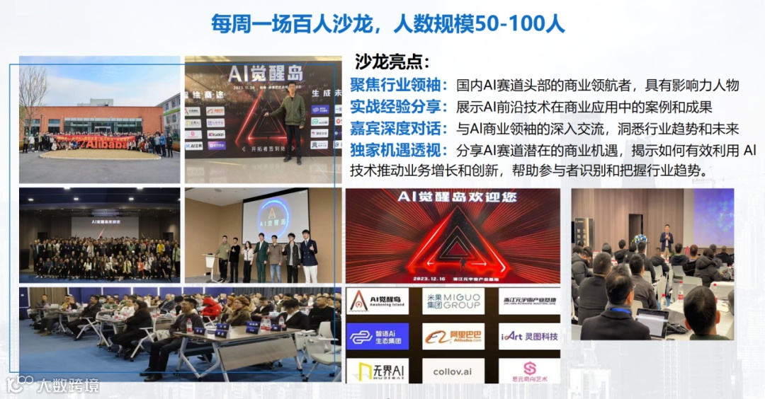 目前AI 觉醒岛已孵化 10 +AI 头部项目,已举办10+场千人峰会和100+场百人沙龙,此外还签约合作了400+ AI 网红,管理500+AI 千人社群,与100+媒体合作,实现百万精准流量覆盖,为 AI 企业赋能带来巨大价值。