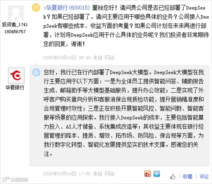 华夏银行已部署DeepSeek大模型,主要应用于3大方面