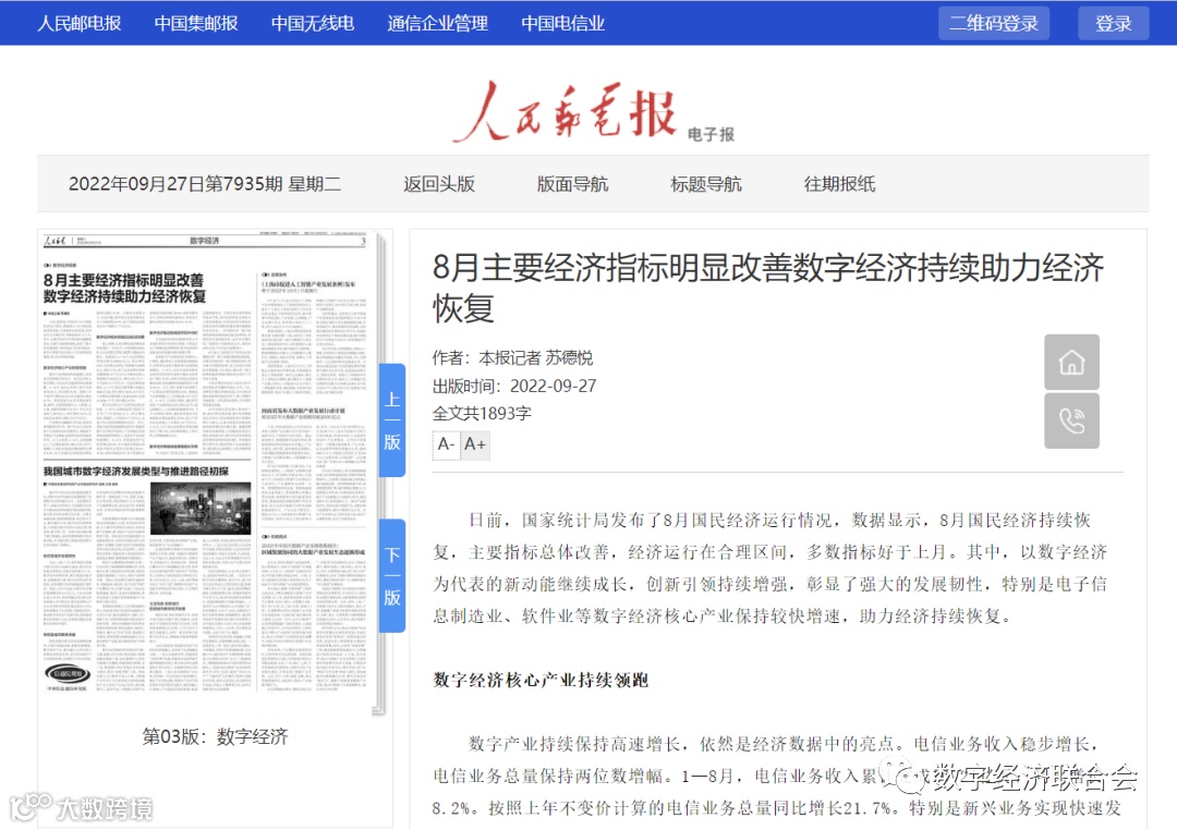 从年初的经济发展主要指标下滑,到8月的总体改善,数字经济都彰显出对冲压力的发展韧性和引领增长的巨大潜力,已成为促进经济稳定恢复和持续增长的关键力量。随着政策举措的加速落地,以及整体经济运行情况的恢复向好,数字经济将持续促进消费和投资的恢复增长,并积极发挥引擎作用,驱动传统产业高质量发展,催生新业态新模式,为经济继续稳定恢复添动能。