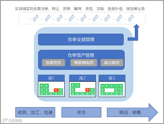 (1)从仓储货物的入库、入库调整、锁定、质押、解押、出库、退货入库等全流程数据第一时间上链,杜绝数据信息造假,使得仓单数据流转自身能形成一个完整的闭环,数据能自证清白;