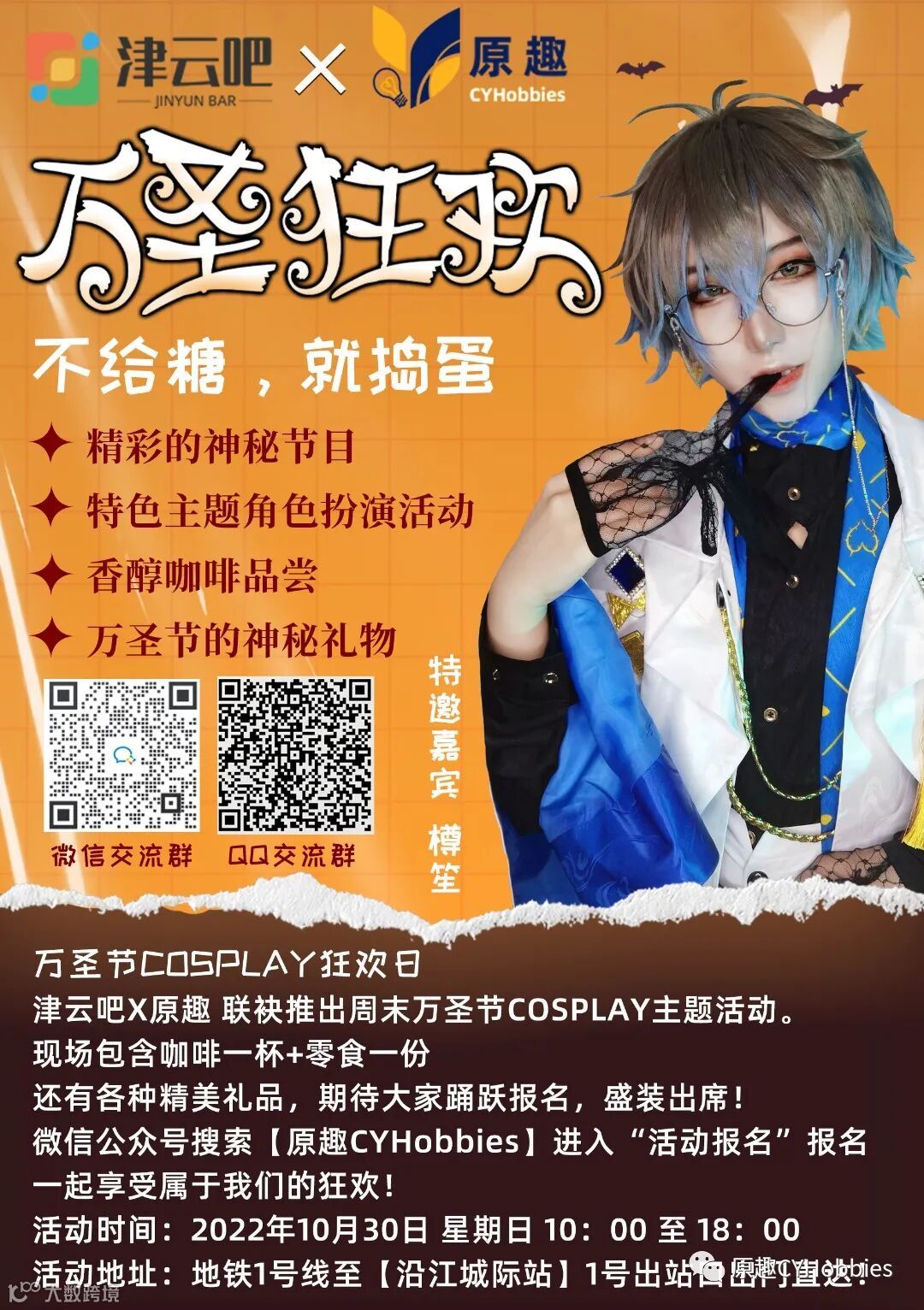 津云吧x原趣 联袂推出周末万圣节cosplay主题活动。