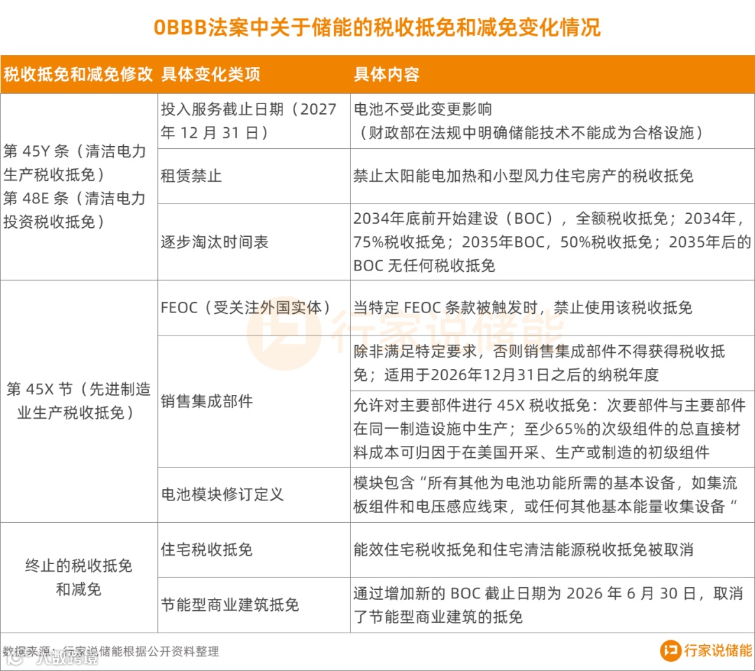 OBBBA法案对《2022 年降低通胀法案》(简称“IRA”)中包含的许多清洁能源税收抵免措施进行了重大修改。其中,电池储能系统主要受法案中第48E和45Y条的约束,这些设施的建设开始时间通常为2033年,并需遵守逐步淘汰的规定。