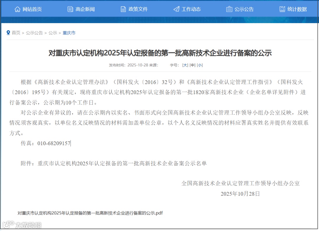 近日,全国高新技术企业认定管理工作领导小组办公室正式公示了重庆市认定机构2025年认定报备的第一批高新技术企业备案名单,弦力场(重庆)数字科技有限公司凭借扎实的研发实力、突出的创新成果转化能力及良好的企业成长性,成功通过层层严苛审核,荣登榜单,正式跻身国家级高新技术企业行列!这一殊荣不仅是对公司科技创新工作的权威认可,更是企业发展历程中具有里程碑意义的重要突破。