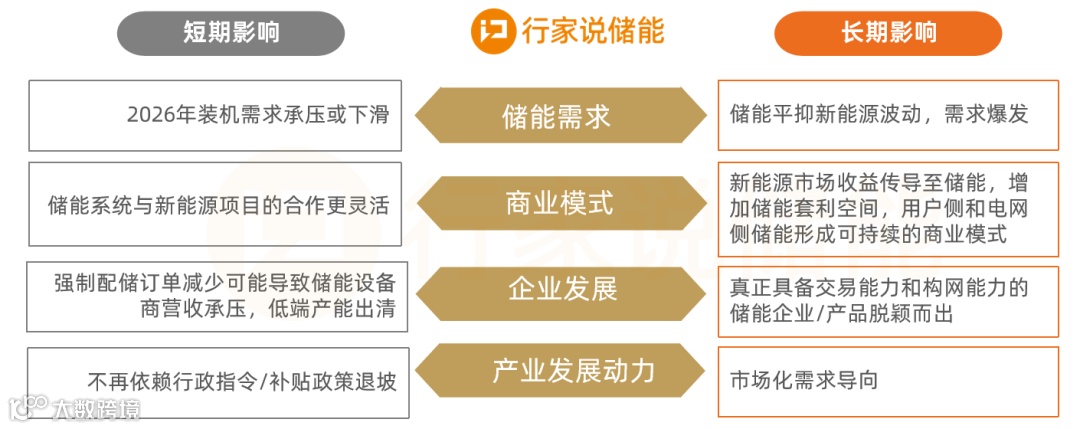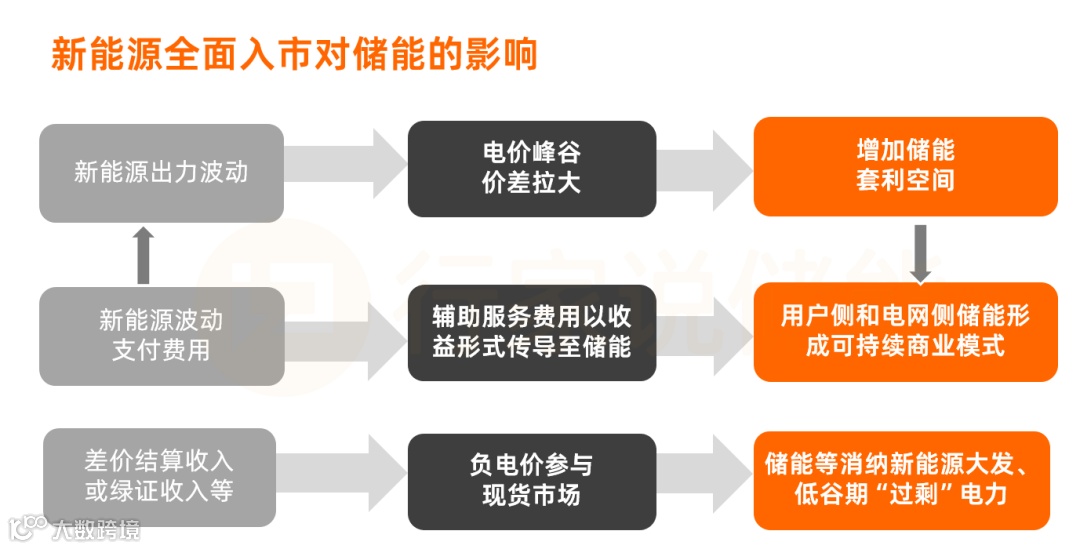 图为:新能源全面入市对储能的影响,制图:行家说储能