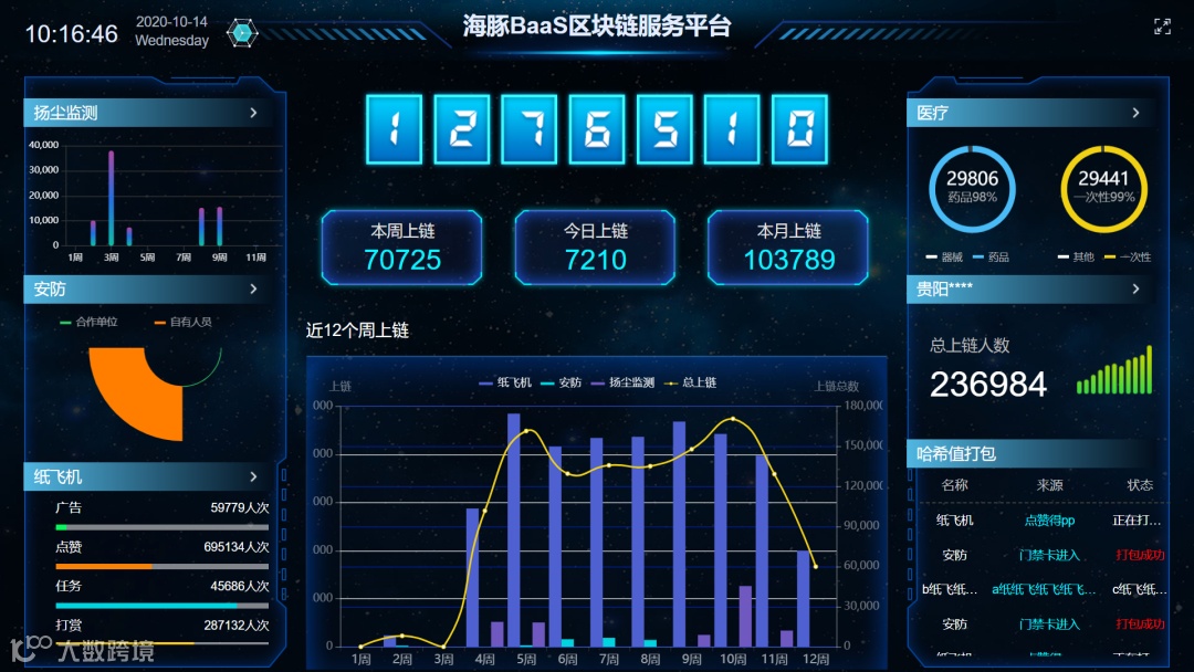 本系统用于对建筑工地扬尘等环境参数进行实时、自动、全面的监测,是集数据采集、实时展示、统计分析、预警及报警等功能为一体的扬尘综合监测系统,能够实时采集、监测现场的颗粒物浓度数据及气象数据,结合视频监控,远程对监测现场空气质量及实际状况进行监测。系统通过在数据采集环节植入5G物联网芯片,将数据实时传输至区块链云服务平台海豚BaaS,从数据源头实现上链,利用区块链技术的哈希算法、非对称加密、机器信任、不可篡改等特点,确保数据准确可靠,实现数据安全高效传输。