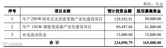 其中,年产15GW储能变流器产业化建设项目总投资约8.95亿元,本次募集资金拟投入6.1亿元,拟在无锡惠山区新建储能产品变流器生产基地,计划建筑面积8.48万平米,项目建设期为2年。税后投资内部收益率为 31.41%,税后投资回收期为 6.17 年(含建设期)。