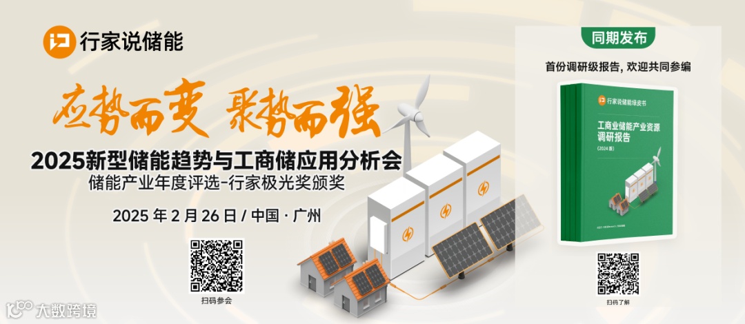 插播:汇聚中车株洲所、天合光能、南网科技、新能安、华友能源、皇鼎储能、正兴电气、永光新能源、厦门国贸,以及融和元储、南瑞继保、智光储能、精控能源、云能魔方、永福数能、钧能科技等业内20位重量级嘉宾,行家说储能·2025新型储能趋势与工商储应用分析会2月26日将在广州举行。点击下方“阅读原文”参会。