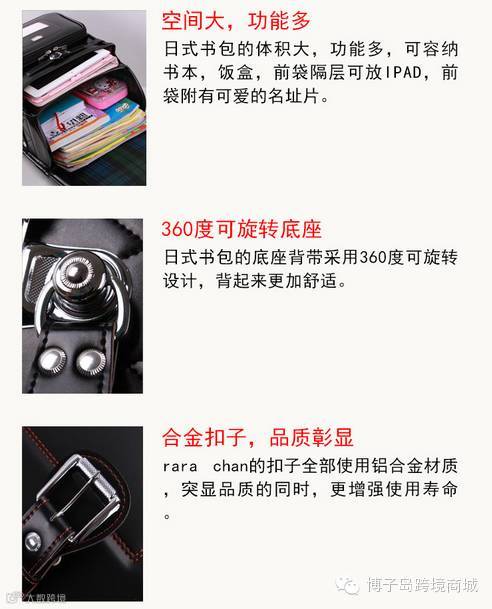 羡慕日本动漫主人公背着方方正正的书包上学?也想让孩子体验一把“日式上学”?这款书包正是你想要的~来自日本的它以其使孩子们充满活力的“轻便性”为豪, 即使到了教材开始变多的高年级,也优先考虑到了孩子们的成长发育,从小小的配件到大大的剪裁选料,全部凝聚了日本工匠们的纯手工精湛技艺,轻便舒适,耐磨 防水,透气安全,只有你想不到,没有它做不到。是时候给孩子们减负了!来自日本的Rarachan品牌书包,是日本株式会社罗罗屋经营的品牌,四十多年来,罗罗屋一直专注于孩子的健康成长,从材料到选定到款式设计,都倾心研究,在日本拥有两家工厂,每一个产品都是纯手工制作。