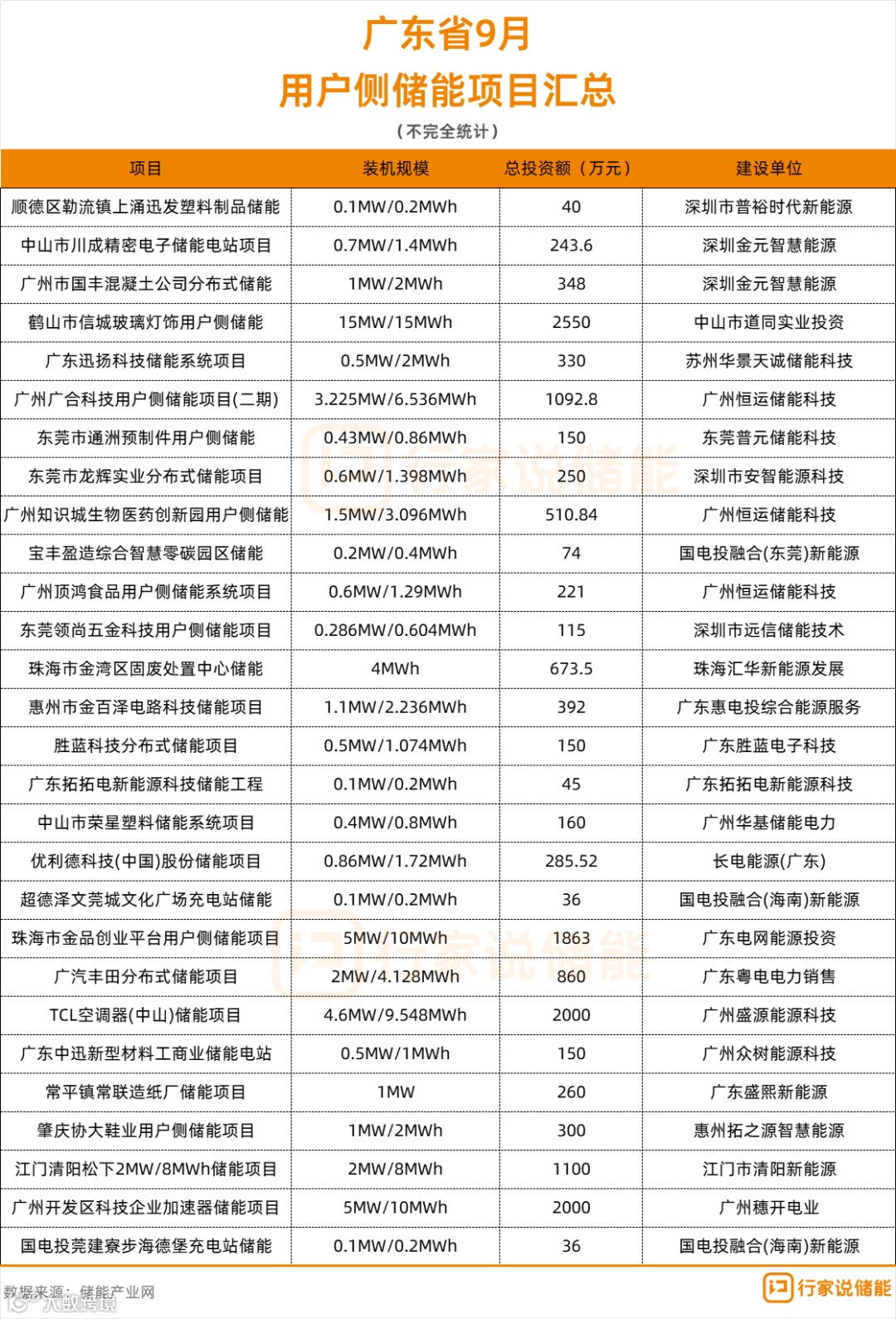 另据储能产业网不完全统计,截至9月27日,广东省9月用户侧储能备案项目规模为48.401MW/89.9264MWh,项目数量有28个,总投资超1.6亿。