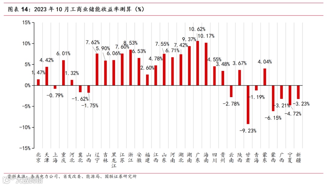 另据国联证券研究所的储能收益率模型测算,2023年10月,大多数省份储能收益率在1%-10%之间,其中,广东收益率最高为10.62%。