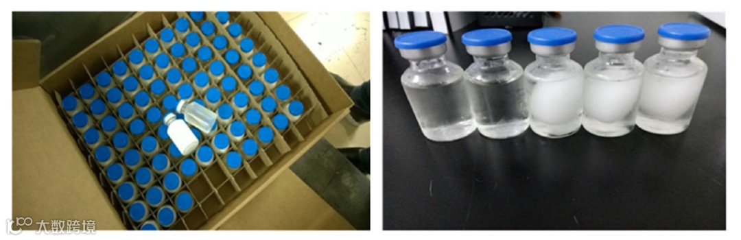 图1-20mL冻干制剂冷藏保存去除后,溶液解冻速率不同,当某些样品完全解冻时,另外一些样品则明显未融(图片来源:参考资料[1])