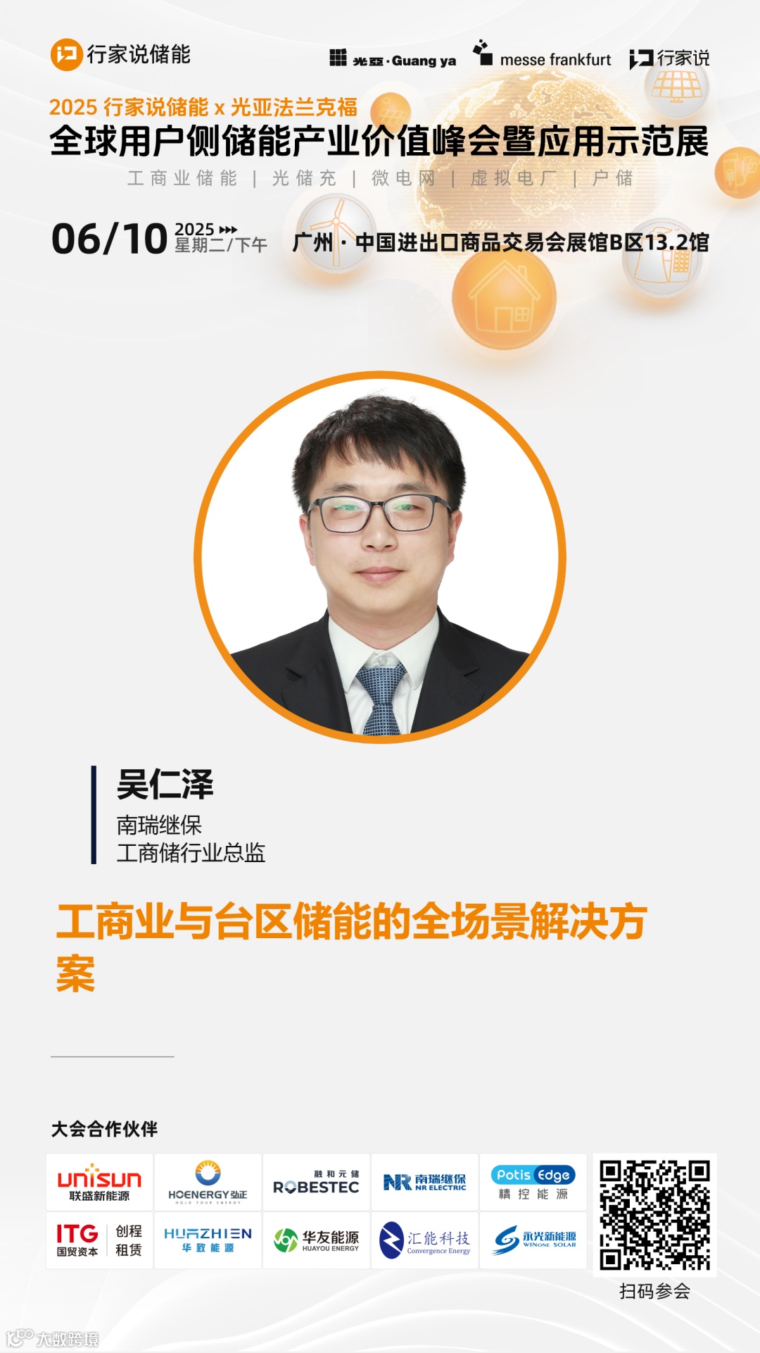 如何面对挑战?此次峰会,南瑞继保工商储行业总监吴仁泽将以《工商业与台区储能的全场景解决方案》为大家解析台区储能相关问题,在电力保护控制基础上探讨降本增效。